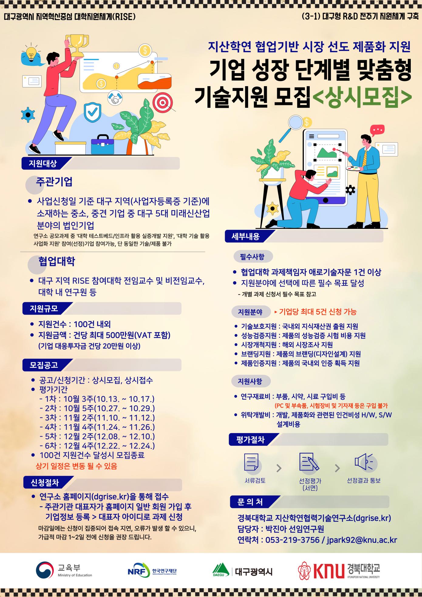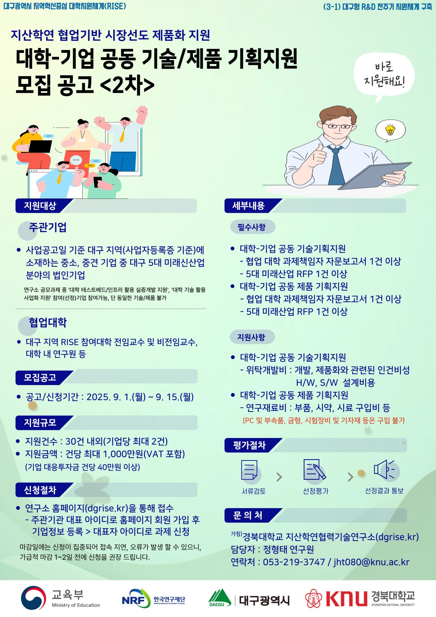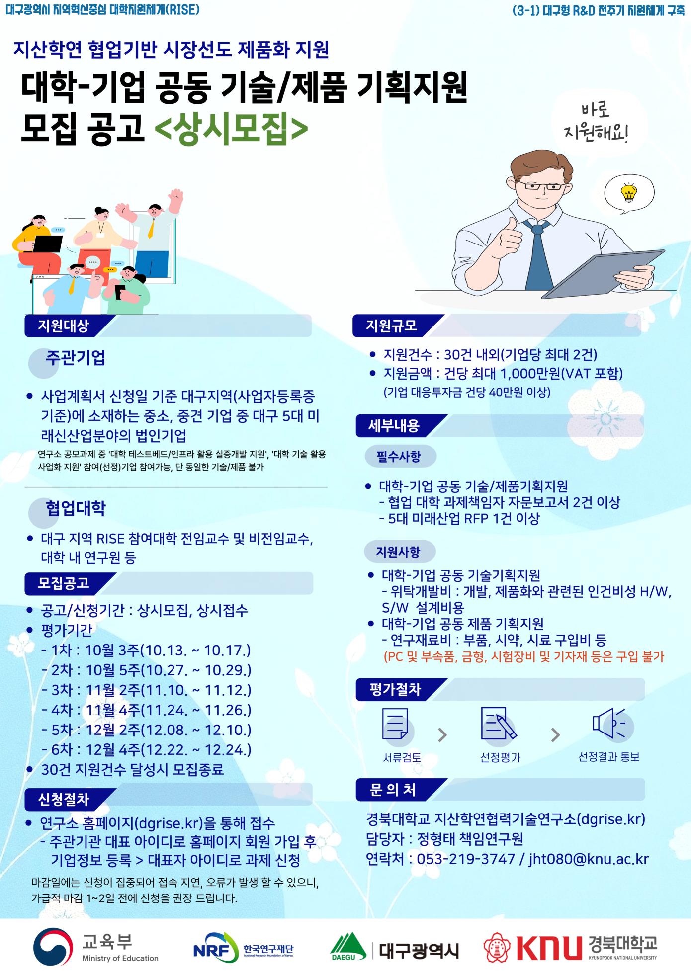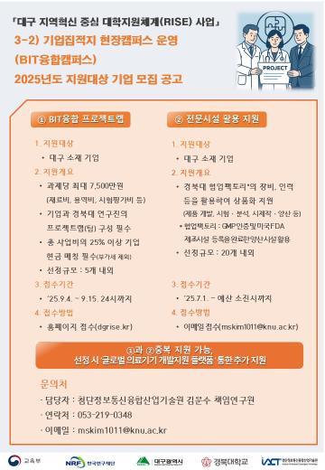 - [대구RISE사업] 경북대 첨단정보통신융합산업기술원 연수연구원(인턴) 3차 모집 2025.09.29