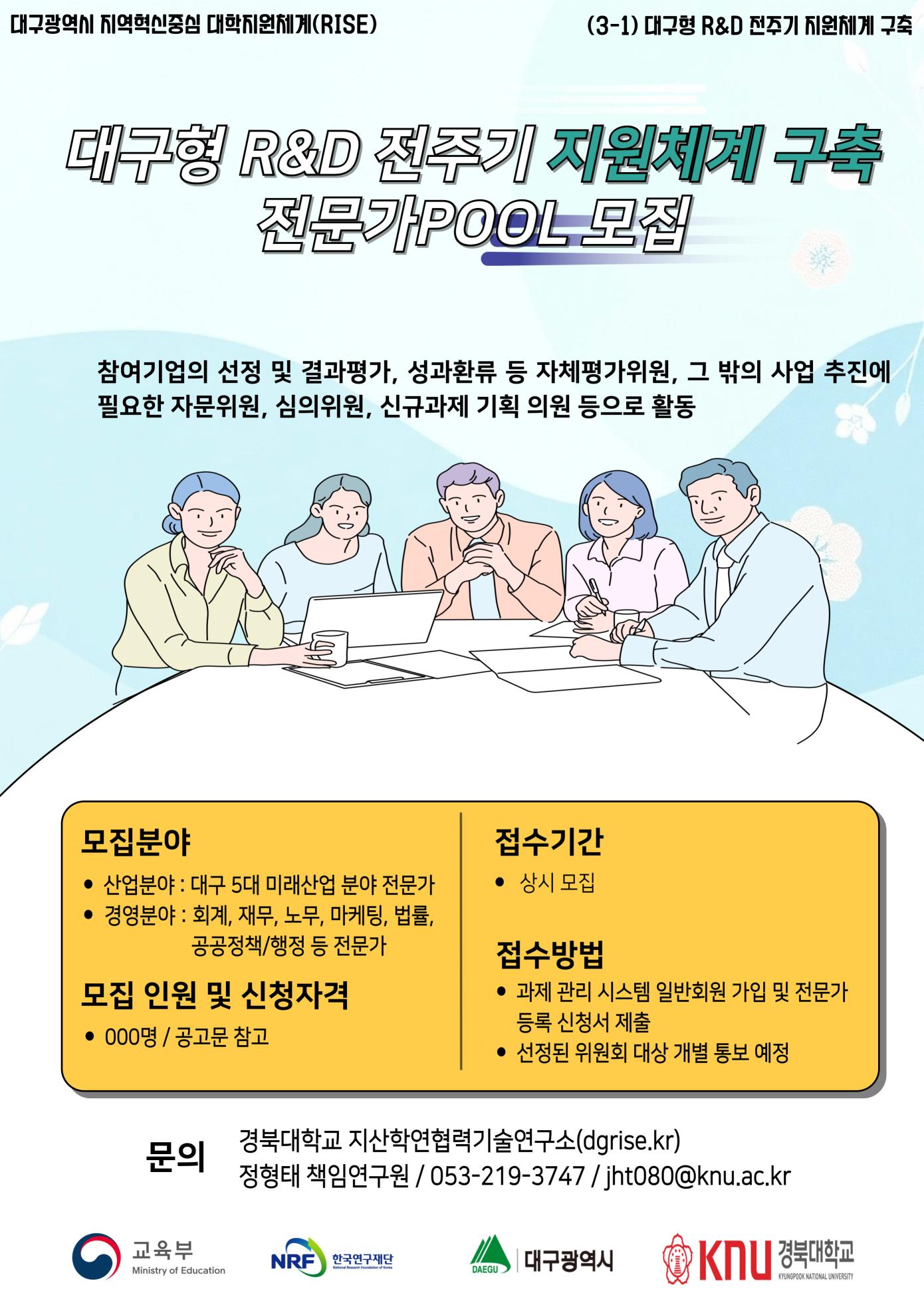 - 「대구형 R&D 전주기 지원체계 구축」 사업 전문가 모집 공고(상시모집) 2025.09.09