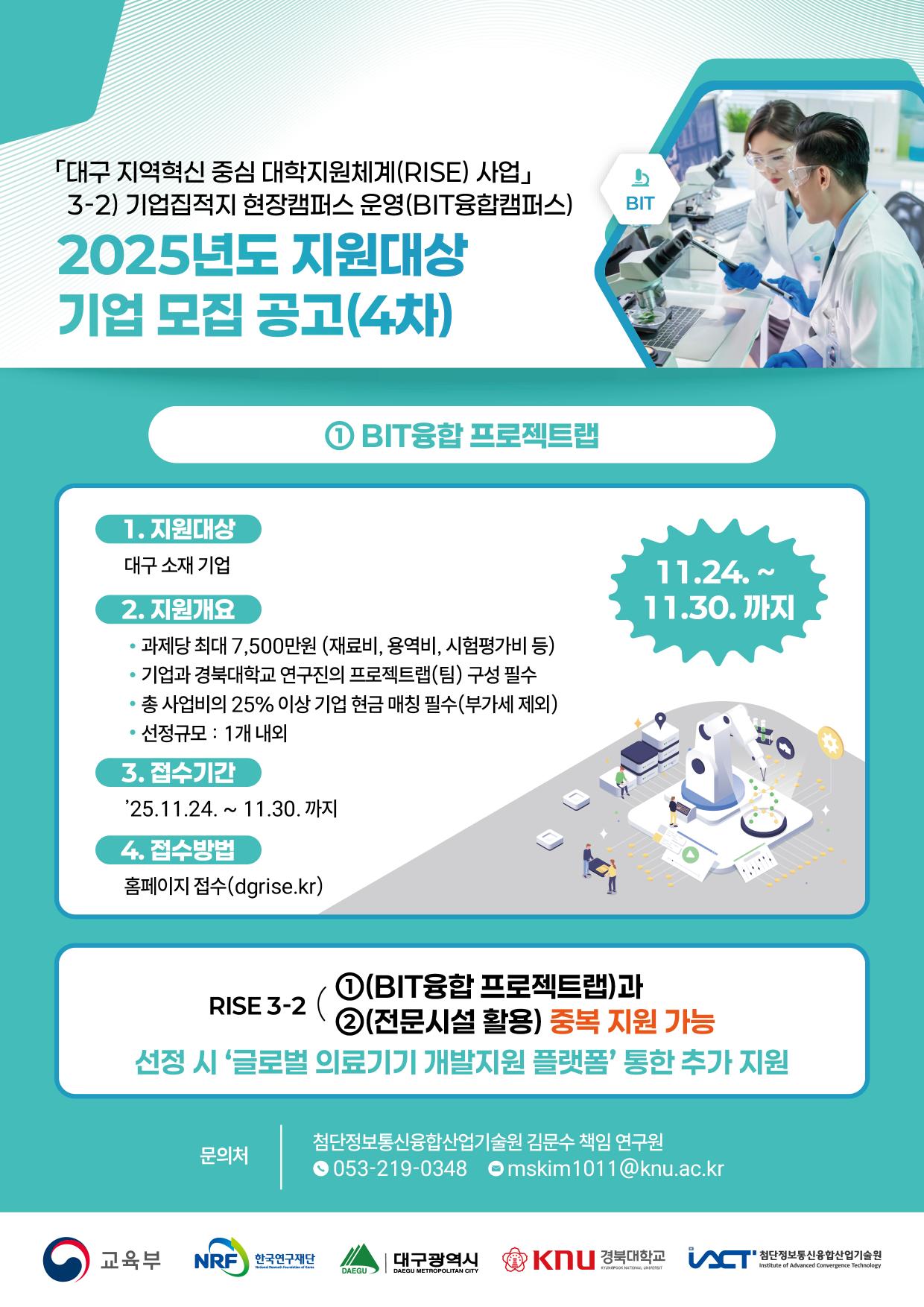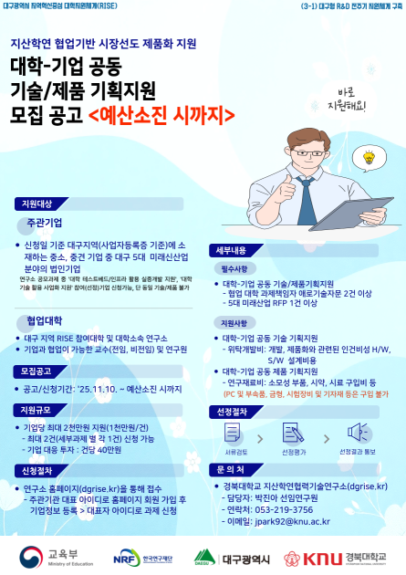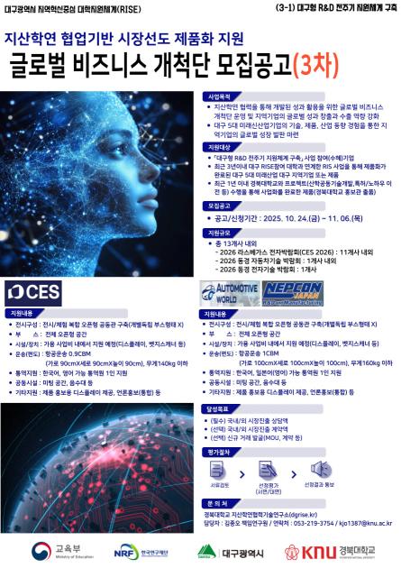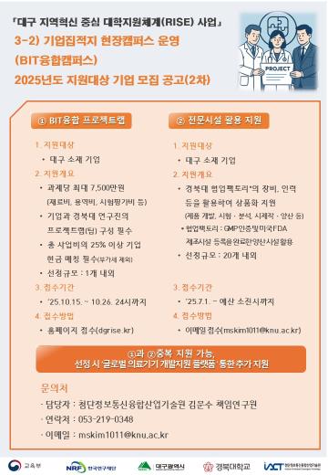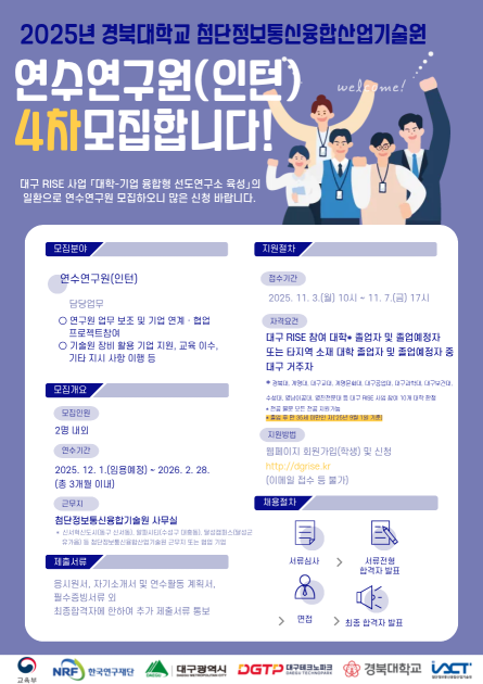- [대구RISE사업] 경북대 첨단정보통신융합산업기술원 연수연구원(인턴) 4차 모집 2025.10.28