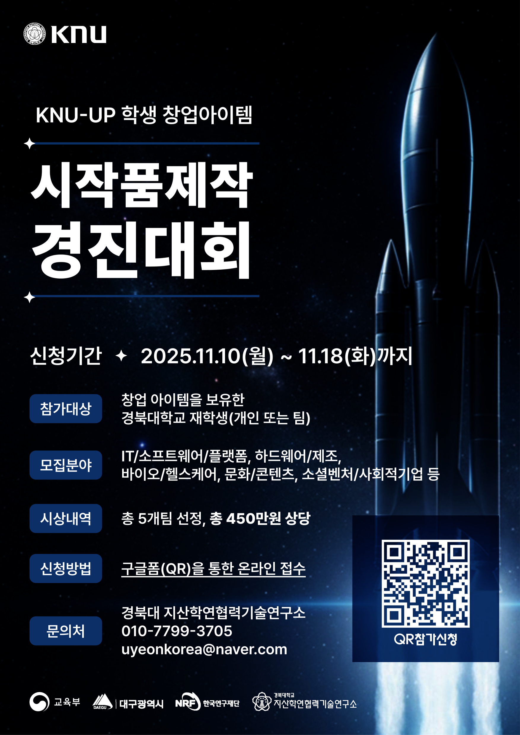 - [대학 특성화 연계 공유형 창업생태계 조성] KNU-UP 학생 창업아이템 '시제품제작 경진대회' 2025.11.13